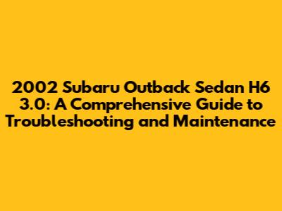 Hey guys! So, you've got a 2002 Subaru Outback Sedan H6 3.0, huh? Awesome choice! These cars are known for their ruggedness, reliability, and that sweet, sweet boxer engine sound. But, like any vehicle, they can throw you some curveballs. Don't worry, though; we're gonna dive deep into the common problems, potential solutions, and some helpful maintenance tips to keep your Outback running smoothly for years to come. This article is your one-stop shop for everything you need to know about keeping your 2002 Subaru Outback Sedan H6 3.0 in tip-top shape. We'll cover everything from engine issues to electrical gremlins, giving you the knowledge to diagnose problems and make informed decisions about repairs. Ready to get started? Let's go!
