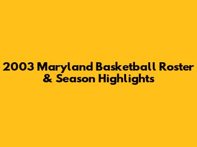 2003 Maryland Basketball: Roster & Season Highlights