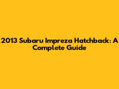 2013 Subaru Impreza Hatchback: A Complete Guide