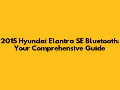 Troubleshooting Steps for Your 2015 Elantra SE Bluetooth