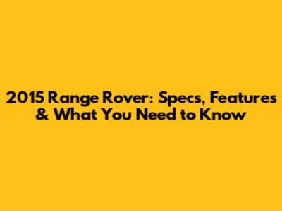 2015 Range Rover: Specs, Features & What You Need To Know