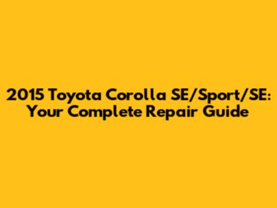 2015 Toyota Corolla SE/Sport/SE: Ultimate Repair Guide