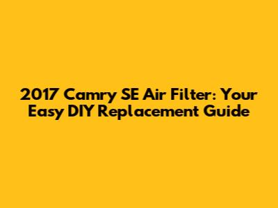 2017 Camry SE Air Filter: DIY Replacement Guide