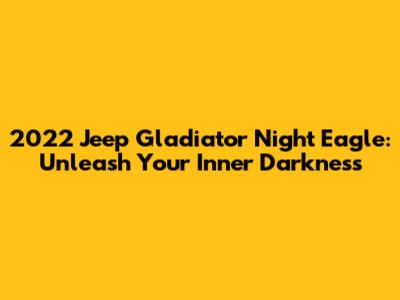 The 2022 Jeep Gladiator Night Eagle is a bold and capable truck that's sure to appeal to those who value style, performance, and off-road prowess. Its dark aesthetics, robust engine, and comfortable interior make it a well-rounded package that's ready for anything. While it might not be the most fuel-efficient or the most capable truck on the market, it offers a unique and compelling driving experience that's hard to resist. So, if you're looking for a pickup that's as unique as you are, the Gladiator Night Eagle might just be the perfect choice. It's a truck that's built to turn heads, designed to perform, and ready to take you on your next adventure. Whether you're cruising through the city streets or exploring rugged trails, the Gladiator Night Eagle is sure to make a statement. It's a truck that embodies the spirit of the Jeep brand, encouraging you to live life to the fullest and explore the world around you.