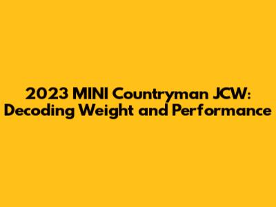 Hey everyone! Today, we're diving deep into the 2023 MINI Countryman JCW – a car that's all about fun, practicality, and a whole lot of oomph. One of the key things people often ask about is its weight, which plays a significant role in how it handles and performs. So, let's get down to brass tacks and unravel everything you need to know about the 2023 MINI Countryman JCW's weight, along with its impressive specs and other cool features. I promise, by the end of this, you'll be a MINI expert!