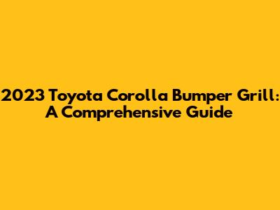 2023 Toyota Corolla Bumper Grill: Everything You Need To Know