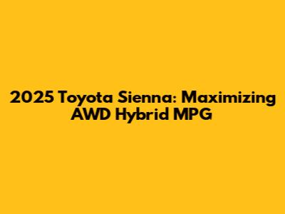 Hey guys! Are you curious about the 2025 Toyota Sienna and what kind of mileage you can expect from the AWD hybrid version? Well, buckle up because we're diving deep into everything you need to know about this awesome minivan's fuel efficiency. For families and individuals alike, understanding the miles per gallon (MPG) is super important, especially when you're trying to save some green while also reducing your carbon footprint. The Sienna has always been a top contender in the minivan segment, and the hybrid AWD model takes it to a whole new level. The Toyota Sienna is known for its reliability, spaciousness, and, most importantly, its hybrid powertrain that offers impressive fuel economy. In this article, we’ll explore the expected MPG of the 2025 Toyota Sienna AWD Hybrid, compare it to previous models, and discuss factors influencing its fuel efficiency. So, whether you’re planning a long road trip or just doing the daily school run, let's find out what the 2025 Sienna has to offer in terms of fuel economy!