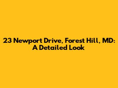 In conclusion, 23 Newport Drive in Forest Hill, MD, represents an opportunity to experience comfortable living in a desirable location. Its blend of suburban tranquility, convenient access to amenities, and strong community make it an attractive option for families, professionals, and retirees alike. By understanding the property's features, the community's attributes, and the local real estate market, prospective buyers can make informed decisions and find their dream home in Forest Hill.