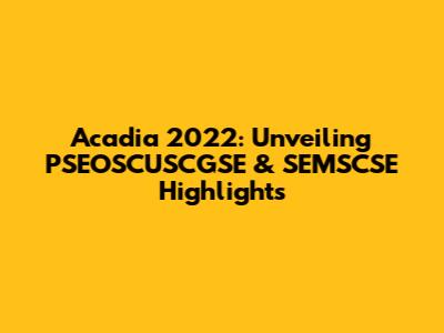 Acadia 2022: Unveiling PSEOSCUSCGSE & SEMSCSE Highlights
