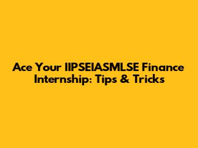 Ace Your IIPSEIASMLSE Finance Internship: Tips & Tricks
