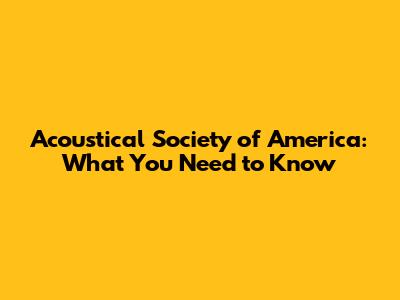 Acoustical Society Of America: What You Need To Know