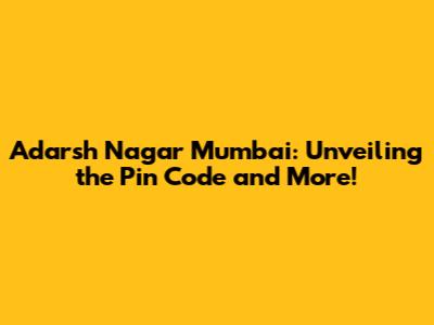 Adarsh Nagar Mumbai: Pin Code And More!