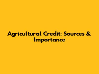 Agricultural Credit: Sources & Importance