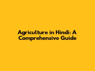Agriculture In Hindi: A Comprehensive Guide