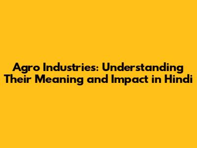 Agro Industries: Meaning & Impact In Hindi