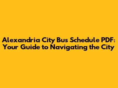 Are you trying to figure out the Alexandria City bus schedule? You've come to the right place! Let's dive into how you can access and understand the Alexandria City bus schedule in PDF format. Public transportation is a lifeline for many, connecting us to work, family, and everything in between. In a bustling city like Alexandria, efficient bus services are crucial. This comprehensive guide will walk you through everything you need to know about accessing and utilizing the Alexandria City bus schedule in PDF format, making your commute smoother and more predictable. Understanding your local bus routes is super important, and having a PDF version on hand can be a game-changer. No more guessing or waiting anxiously at the bus stop! We'll cover where to find these schedules, how to read them, and even some tips for making the most of your ride. Public transportation is not just about getting from point A to point B; it's about convenience, affordability, and reducing our carbon footprint. By using the Alexandria City bus system, you're contributing to a more sustainable and accessible city for everyone. Let's explore how you can become a pro at navigating Alexandria with the help of readily available PDF bus schedules. Whether you're a student, a daily commuter, or someone exploring the city, having quick access to bus schedules can significantly enhance your travel experience. So, buckle up and let's get started on this journey to mastering the Alexandria City bus schedule!