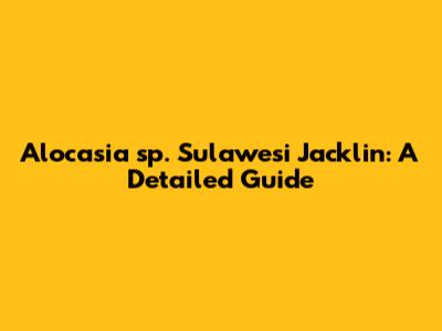 Alocasia Sp. Sulawesi Jacklin: A Detailed Guide