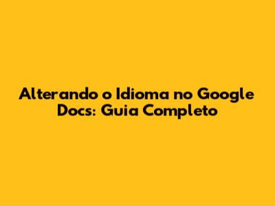 Alterando O Idioma No Google Docs: Guia Completo