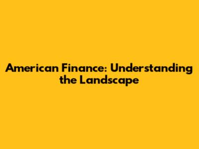 American Finance: Understanding The Landscape