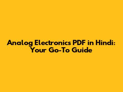 Analog Electronics PDF In Hindi: Your Go-To Guide