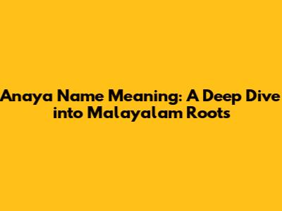 Anaya Name Meaning: A Deep Dive Into Malayalam Roots