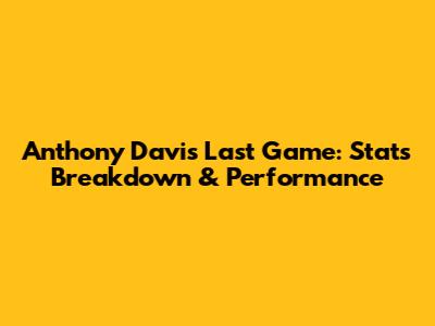 Anthony Davis' Last Game: Stats Breakdown & Performance
