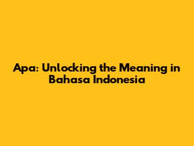 Apa: Unlocking The Meaning In Bahasa Indonesia