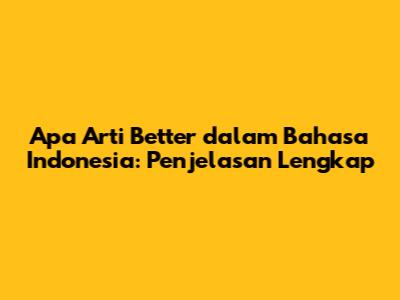 Arti Kata 'Better' Dalam Bahasa Indonesia: Penjelasan Lengkap