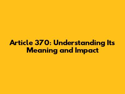 Article 370: Understanding Its Meaning And Impact