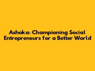 Ashoka: Championing Social Entrepreneurs For A Better World