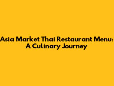 Asia Market Thai Restaurant Menu: A Culinary Journey