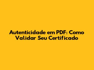 Autenticidade Em PDF: Como Validar Seu Certificado