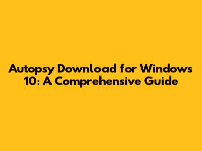 Autopsy Download For Windows 10: A Comprehensive Guide
