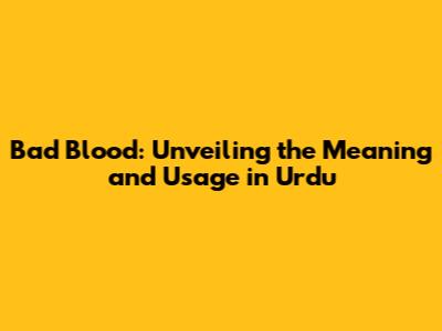 Bad Blood: Unveiling The Meaning And Usage In Urdu