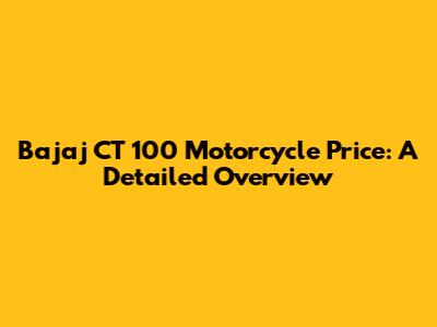 Bajaj CT 100 Motorcycle Price: A Detailed Overview