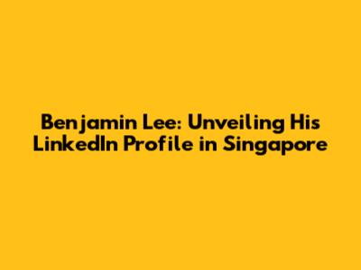 Benjamin Lee: Unveiling His LinkedIn Profile In Singapore