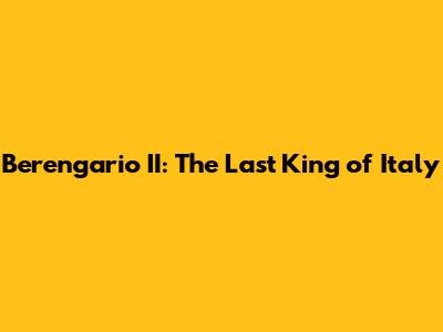 Berengario II: The Last King Of Italy