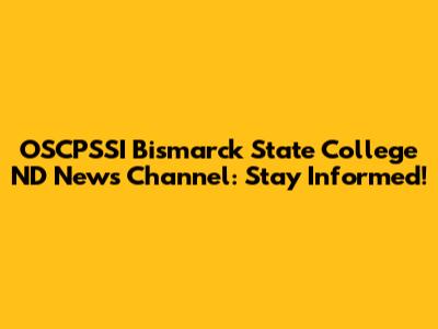 Bismarck State College News: OSCPSSI Updates & More