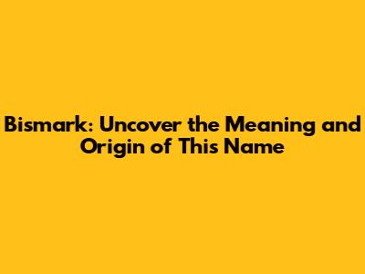 Bismark: Uncover The Meaning And Origin Of This Name