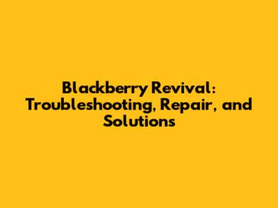 Blackberry Revival: Troubleshooting, Repair, And Solutions