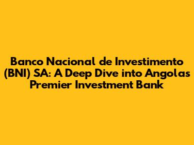 Hey guys! Let's talk about the Banco Nacional de Investimento (BNI) SA, or as you might know it, the National Investment Bank of Angola. It's a big player in Angola's financial scene, and today, we're going to dive deep into what makes BNI tick. We'll explore its role, its impact, and why it's a key institution for anyone interested in investing in Angola. Trust me, it's a fascinating story, filled with potential and a real impact on the country's economic development. So, buckle up, and let's get started!