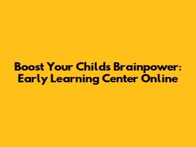 Boost Your Child's Brainpower: Early Learning Center Online