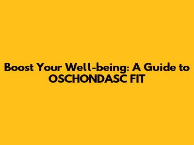Boost Your Well-being: A Guide To OSCHONDASC FIT
