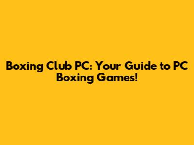 Boxing Club PC: Your Guide To PC Boxing Games!