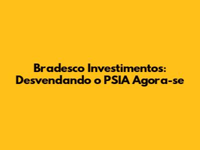 Bradesco Investimentos: Desvendando O PSIA Agora-se