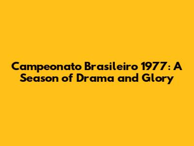 Campeonato Brasileiro 1977: A Season Of Drama And Glory