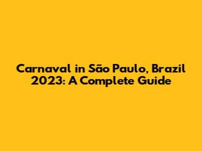 Carnaval In São Paulo, Brazil 2023: A Complete Guide
