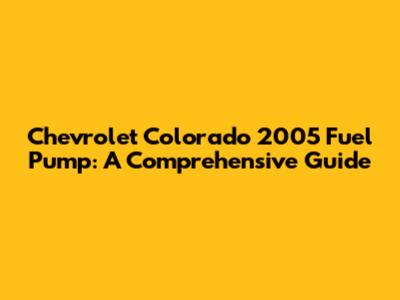 Understanding Your 2005 Chevrolet Colorado Fuel Pump