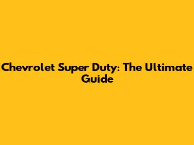 Chevrolet Super Duty: The Ultimate Guide