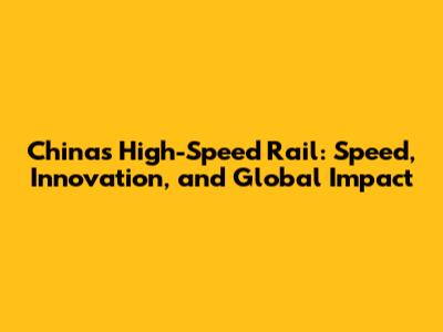 China's High-Speed Rail: Speed, Innovation, And Global Impact